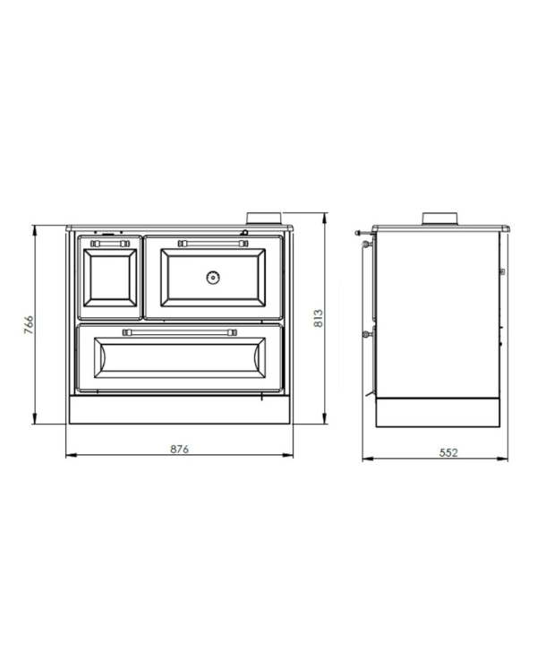Geniş fırın bölmesi günlük yemek pişirme, ekmek ve hamur işleri için ideal kullanım sunarken, alt bölümde bulunan çekmece sayesinde odun, kömür veya mutfak gereçleri düzenli şekilde saklanabilir. Bu özellik, ürünü klasik kuzine sobalardan daha kullanışlı hale getirir.